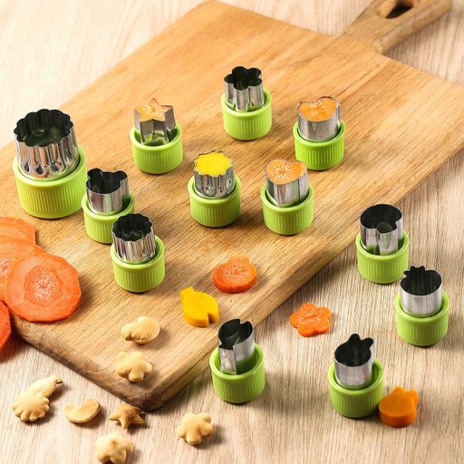 Zestaw 12 sztuk funkcjonalnych wykrawaczy do owoców i warzyw (11 małych foremek i 1 duża)