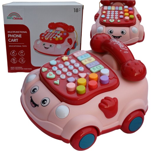 Telefon na Kółkach z Słuchawką - edukacyjna zabawka łącząca pianinko i melodie, idealna do rozwijania umiejętności motorycznych i muzycznych maluchów.