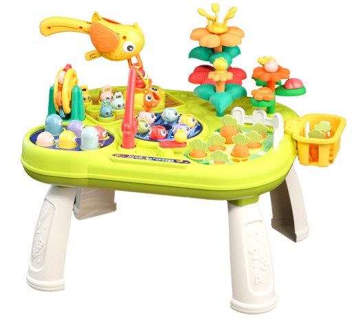 Multistolik dzięki swej wielofunkcyjności pozwala dziecku na różnorodną zabawę i gwarantuję że zabawka szybko się nie znudzi ponieważ ma do zaoferowania zabawę w łowienie rybek, wbijania robaczków młoteczkiem, zabawy w ogród czy zabawy z dzięciołem w wyciąganie robaczka.