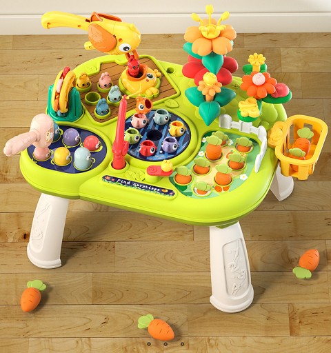 - Wielofunkcyjność: Multistolik to stolik pełen różnorodnych zabawek i gier, takich jak młoteczek, wędka, rybki, mała sensoryka i wiele więcej, co sprawia, że każde dziecko znajdzie coś dla siebie.