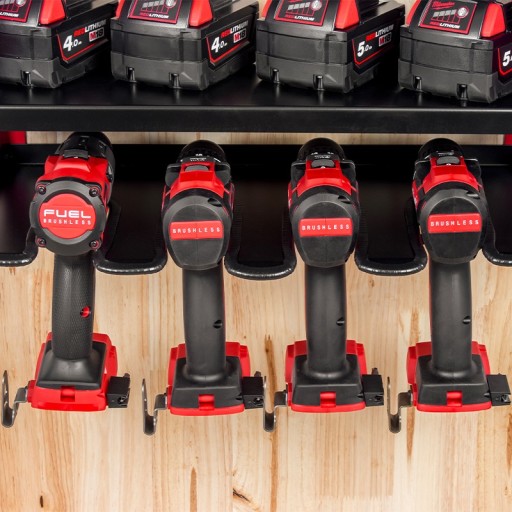 Wyposażona w 4 uchwyty na elektronarzędzia, zapewnia to wystarczającą przestrzeń, by pomieścić niezbędne narzędzia w zorganizowany i dostępny sposób.