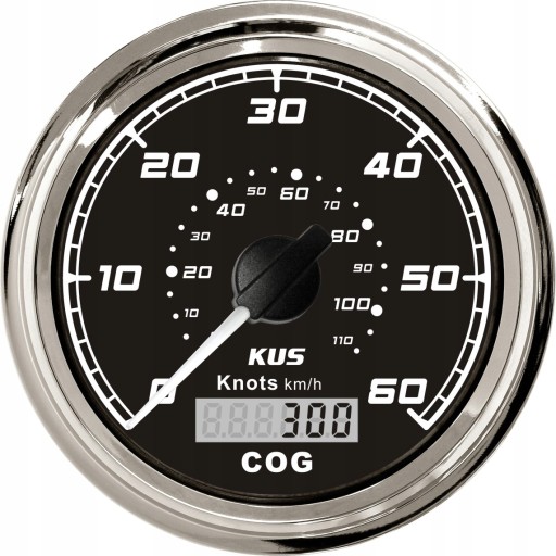 Prędkościomierz KUS z ramką wykonaną ze stali nierdzewnej oraz szybką ze wzmocnionego, dwuwarstwowego szkła posiadająca zabezpieczenie przeciw parowaniu (anti-fogging).