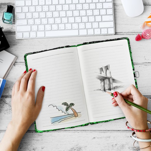 ✅Odwracalne pokrycie z cekinów: Na okładce zastosowano odwracalny wzór z cekinów, a dzięki odwracanym cekinom uzyskuje się różne wzory.