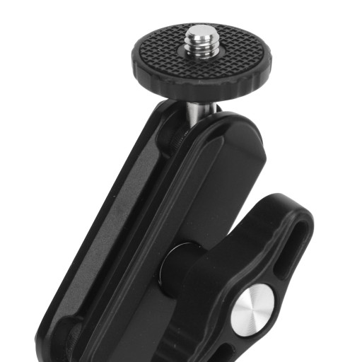 4. Wiele punktów połączeń: Zacisk do mocowania kamery oferuje kilka otworów na śruby 1/4 cala i mocowania zimnej stopki. Służą one jako punkty połączeń dla innego sprzętu, takiego jak monitory, wsporniki i ramiona przegubowe, poszerzając zakres zastosowań zacisku.