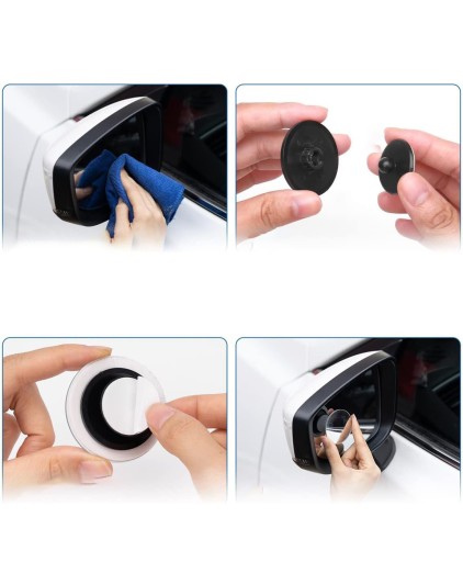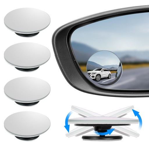 【Zestaw 4 lusterek samochodowych z martwym punktem】 Szkło HD, okrągłe, bezramowe, wypukłe lustro, ultracienka konstrukcja, stabilny klej , obrót o 360° i regulowany kąt pochylenia o 30° dla osób o różnym wzroście.