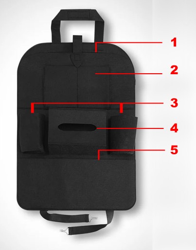 Organizer na fotel został specjalnie zaprojektowany z myślą o każdym, nawet najmłodszym pasażerze samochodu, znajdują się w nim: