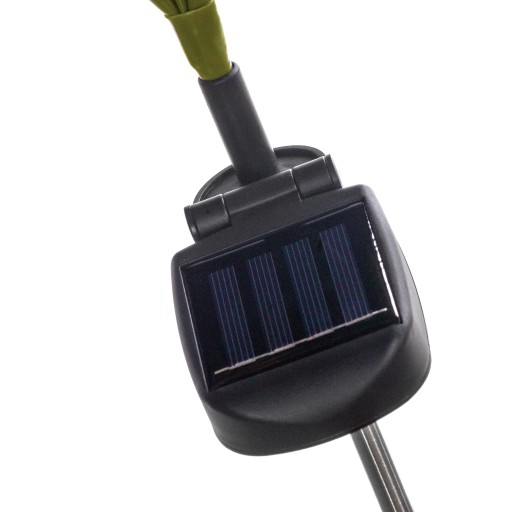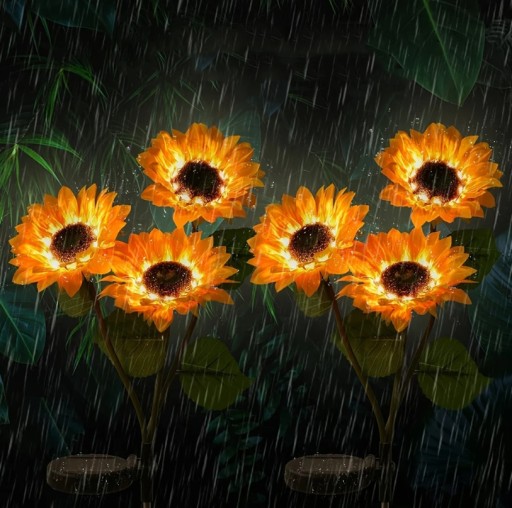 Diody LED w słonecznikach są wodoodporne i w pełni odporna na warunki atmosferyczne, więc nie musisz się martwić deszczem. Lampa ładowana jest w ciągu dnia za pomocą panelu solarnego, magazynując prąd w akumulatorku (AAA, 400mAh).