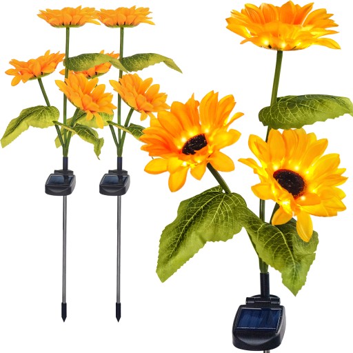 Zestaw 2x Lampka LED Solarna SŁONECZNIK wbijana dogruntowa