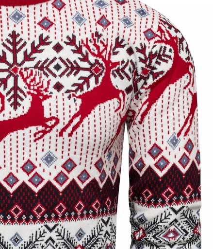 Sweter męski świąteczny - zanurz się w świątecznej magii za pomocą naszego wyjątkowego swetra męskiego, stworzonego z myślą o tych, którzy pragną wyróżnić się podczas zbliżającego się sezonu. Model tego niezwykłego swetra powstał w niewielkiej, limitowanej ilości, co sprawia, że możesz być jedną z osób, mającą okazję nosić coś naprawdę wyjątkowego. Sweter ozdobiony został unikalnymi motywami nawiązującymi do magicznej atmosfery świąt. Renifery, płatki śniegu i subtelne ozdoby sprawiają, że sweter jest idealny zarówno na firmową imprezę, jak i rodzinne spotkanie przy wigilijnym stole. Skład materiału: 60% bawełna, 40% akryl.