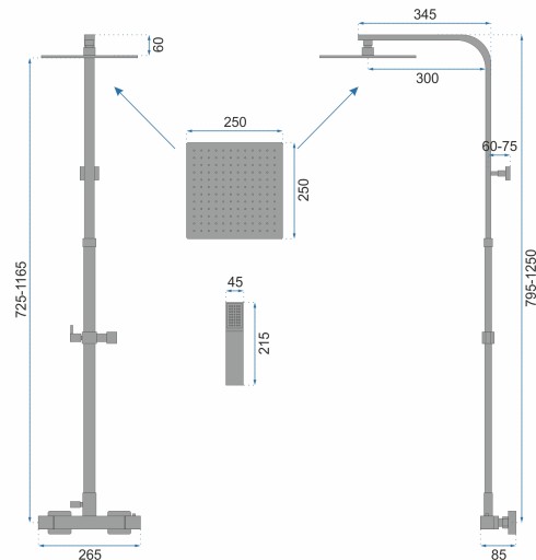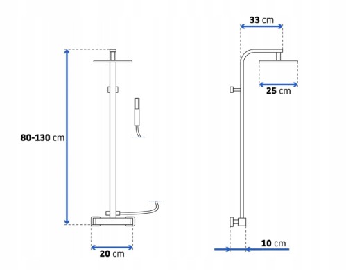 - Skład zestawu: Bateria, wąż prysznicowy ze słuchawką, stalowa deszczownica