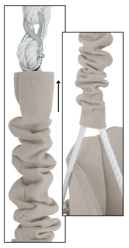 ✅ po wyregulowaniu huśtawki "metalową ósemkę" możemy sprytnie zasłonić osłonką na liny która tworzy piękny element dekoracyjny.