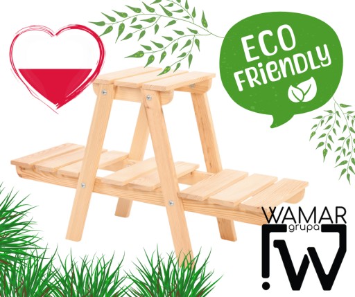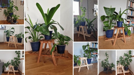 Drewniany stojak na doniczki z kwiatami lub ziołami.