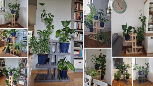 - Wielopoziomowy - masz możliwość postawienia kilku doniczek z kwiatami o różnej wysokości. Maksymalne obciążenie półek dolnych to 20-25 kg a górnych 10-15 kg w zależności od modelu. Duża swoboda w rozmieszczaniu roślin.