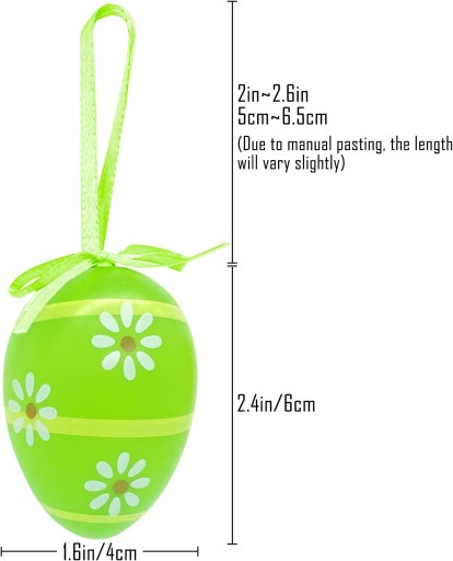 - [Rozmiar i materiał] - Te piękne wiszące ozdoby wielkanocne są wykonane z wysokiej jakości tworzywa sztucznego, które nie są łatwe do uszkodzenia, lekkie, łatwe i bezpieczne do powieszenia; każde jajko ma wymiary 6 x 4 cm / 2,4 x 1,6 cala, odpowiedni rozmiar można zawiesić w dowolnym miejscu