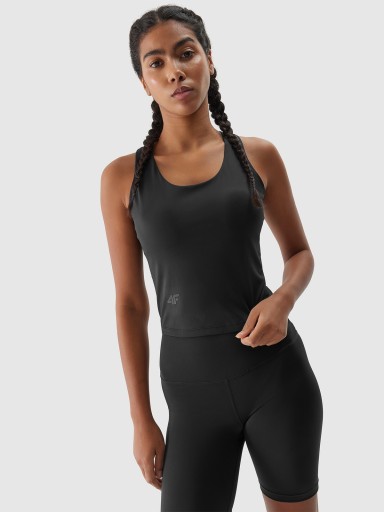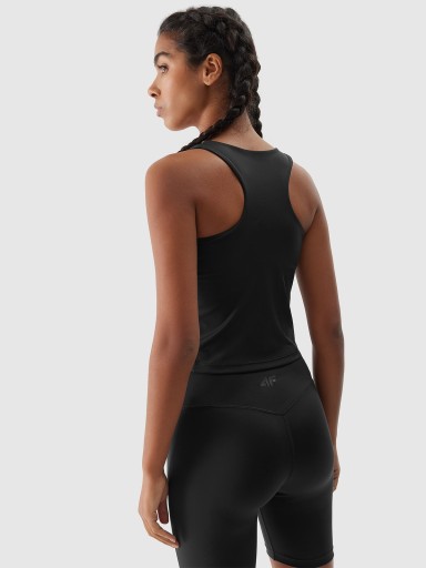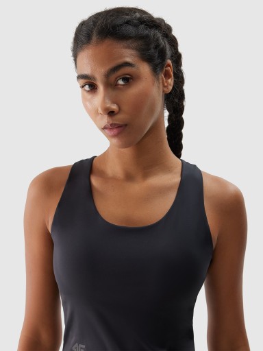 Top sportowy damski jest wykonany z materiału syntetycznego, który zapewnia trwałość i jest łatwy w pielęgnacji. Dzięki dodatkowi elastanu (16%) jest lekko rozciągliwy i wygodnie układa się na sylwetce.