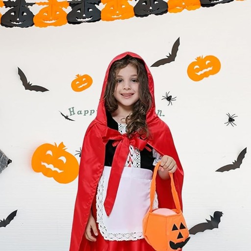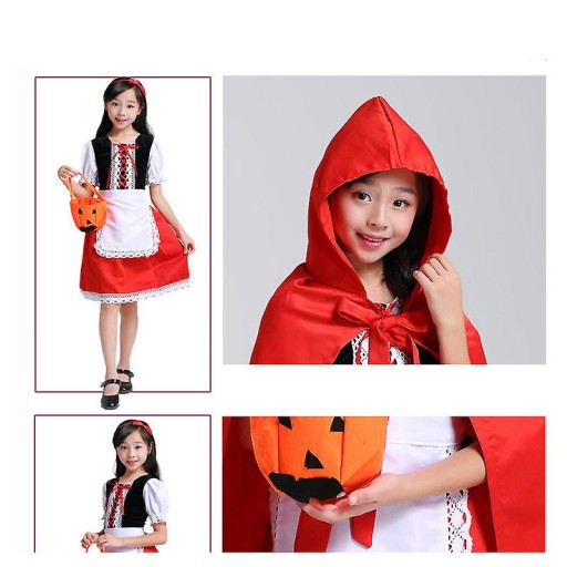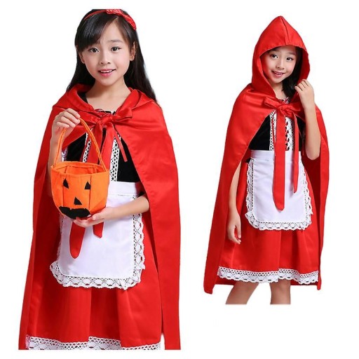 - Zestaw składa się z sukienki, pelerynki, fartuszka ,opaski , podkolanówek i koszyczka na cukierki!