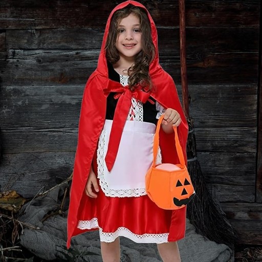 STRÓJ KOSTIUM CZERWONY KAPTUREK PELERYNA SUKIENKA HALLOWEEN KARNAWAŁ