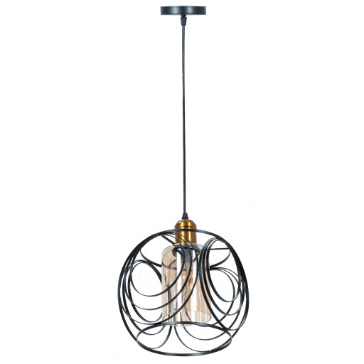 Lampa wykonana jest ze szkła i metalu w kolorze czarnym i złotym. Posiada najpopularniejszy gwint E27 o mocy 60W.
