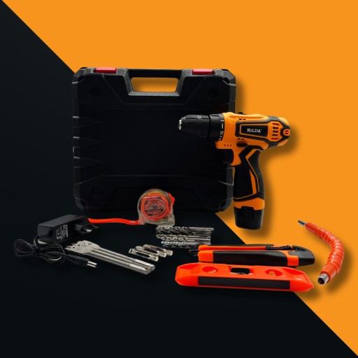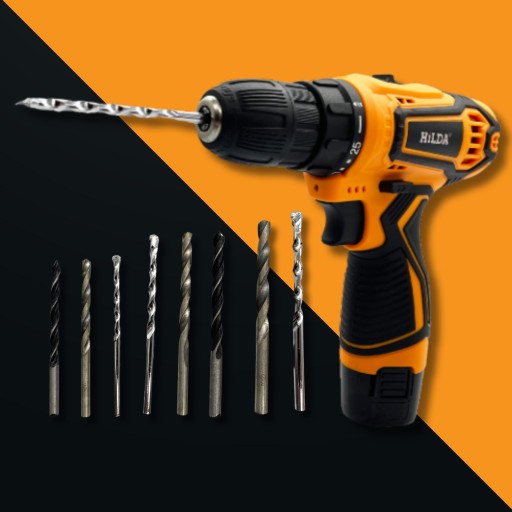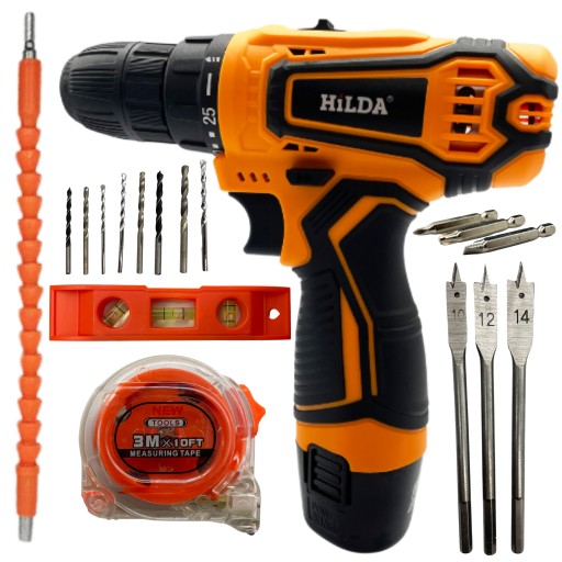 АККУМУЛЯТОРНАЯ ДРЕЛЬ, ОТВЕРТКА, НАБОР БИТ, ДРЕЛЬ-ДРЕЛЬ 12V LED LI-LON HILDA