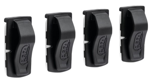 Cztery przyklejane zaczepy umożliwiają zamontowanie latarki czołowej Petzl na kasku, który fabrycznie nie jest wyposażony w zaczepy na czołówkę.