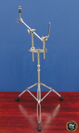 Pancerny statyw pod tom i talerz z wyjmowanym potrójnym clampem. Tomholder kulowy z prętem sześciokątnym, ramię pod talerz ma kulową regulację główki.