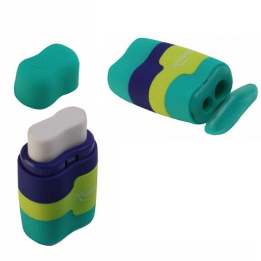 Точилка для карандашей CONNECT с ластиком, цветная, 2 отверстия, 49221