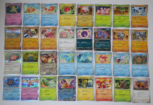 Mam do zaoferowania 165 ORYGINALNYCH KART POKEMON z najnowszego dodatku 151 - cały bazowy set od 1 do 165 wraz z kartami specjalnymi EX (bez rewersów).