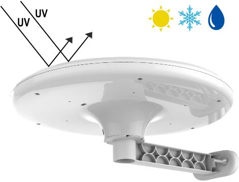 - Horyzontalna budowa anteny w kształcie płaskiego "dysku" o średnicy ok. 33cm, zdecydowanie ułatwia odbiór sygnału telewizyjnego.