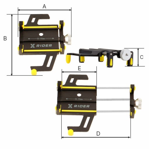 - 🚲 Aluminiowy uchwyt przeznaczony jest do telefonów o szerokości w zakresie 55 - 95mm.