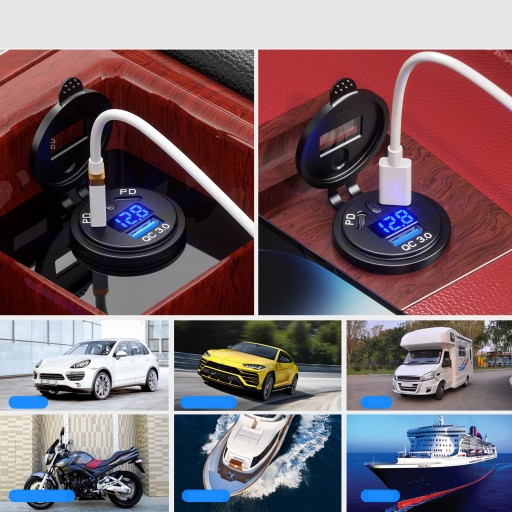 ✔️ Ładowarka motocyklowa USB QC3.0 + USB-C PD45W WOLTOMIERZ + fizyczny przycisk