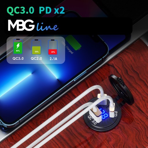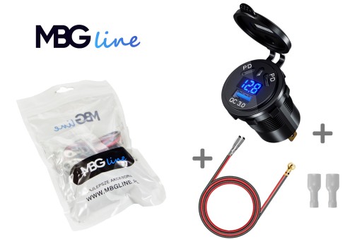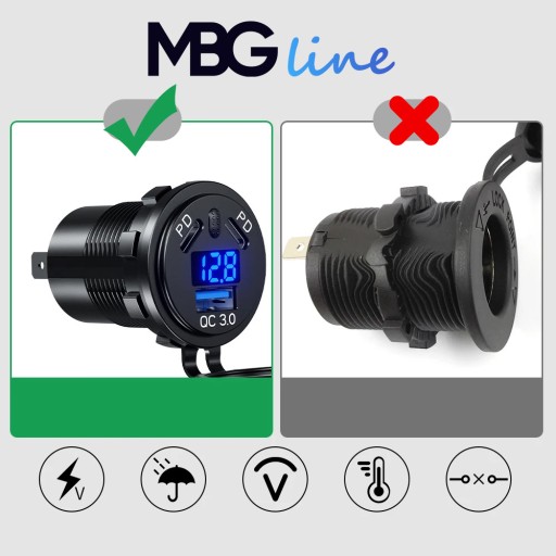 ⭐ Wodoodporna super szybka ładowarka MBG LINE do motocykla, skutera, quada, motorówki 3x USB: QC3.0 + 2x USB-C PD45W! ⭐