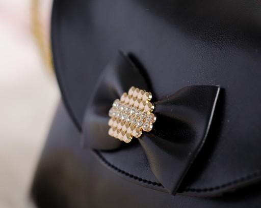 Torebka w kolorze czarnym ze złotym sznurkiem oraz złotym elementem dekoracyjnym. Torebka wykonana z wysokiej jakości ekoskórki.