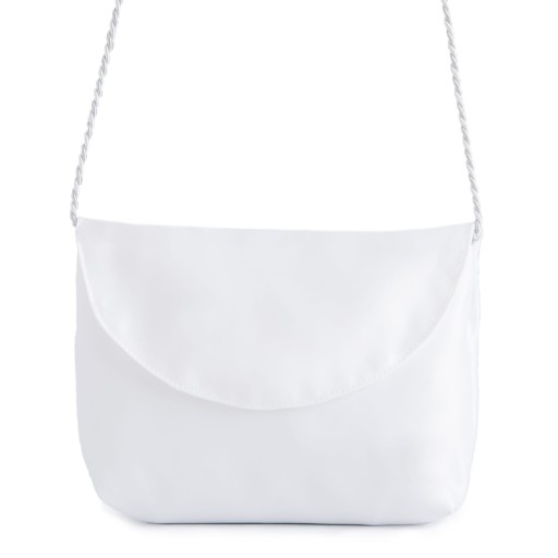 Torebka komunijna w kolorze białym ze srebrnym sznurkiem. Torebka wykonana z wysokiej jakości satyny.