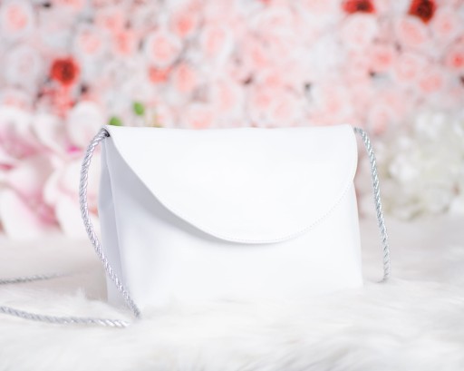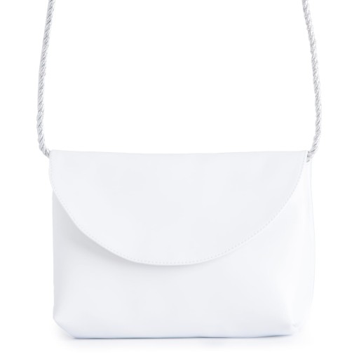 Torebka komunijna w kolorze białym ze srebrnym sznurkiem. Torebka wykonana z wysokiej jakości ekoskórki.