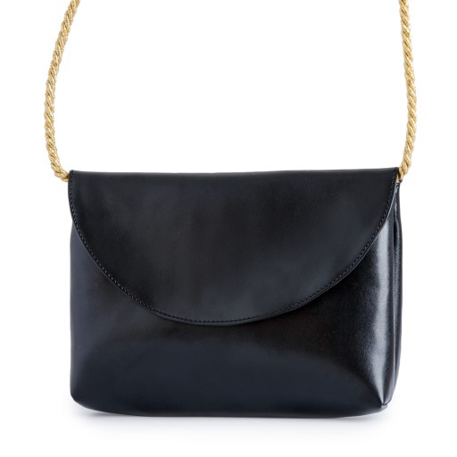 Torebka w kolorze czarnym ze złotym sznurkiem oraz złotym elementem dekoracyjnym. Torebka wykonana z wysokiej jakości ekoskórki.
