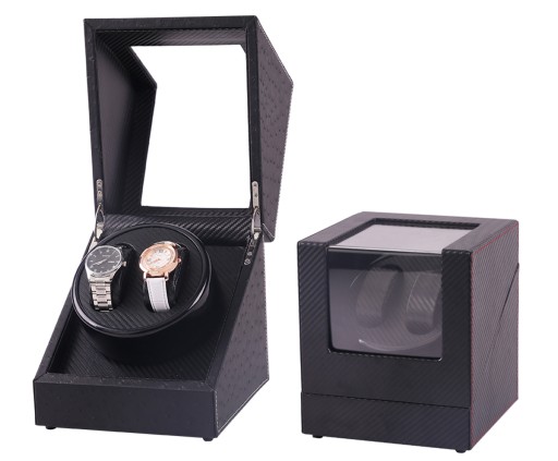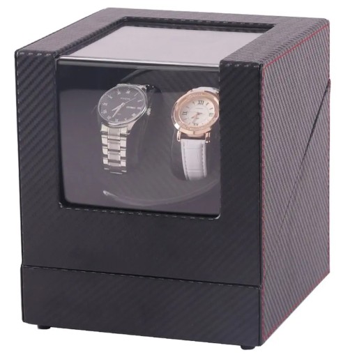 Niezwykle funkcjonalny, automatyczny rotomat na dwa zegarki. Wykonany z eleganckiej eko-skóry w czarnym kolorze, przeszycia z czerwonej nici dodatkowo podnoszą atrakcyjność etui. Dzięki czarnej barwie doskonale pasuje do wnętrz o każdym wystroju. Urządzenie umożliwia automatyczne nakręcanie zegarków z automatycznym naciągiem, zastępując ruchy nadgarstka.