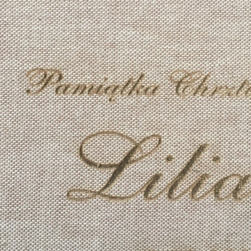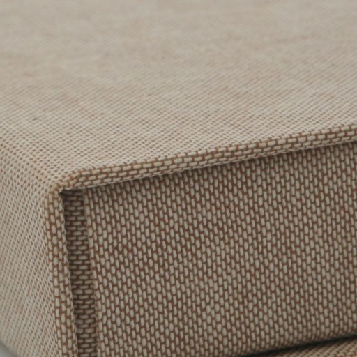 Pudełko na zdjęcia wykonane zostało z grubej i sztywnej tektury pokrytej jasnym, grubo utkanym płótnem.