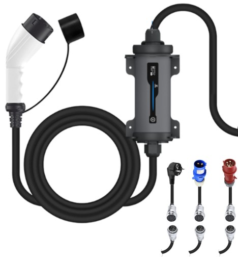 ✔️ Uniwersalny montaż – można zainstalować ją na ścianie jako stację Wallbox lub traktować jako przenośną ładowarkę. Ładowarka do pojazdów elektrycznych może być zasilana napięciem 380V.