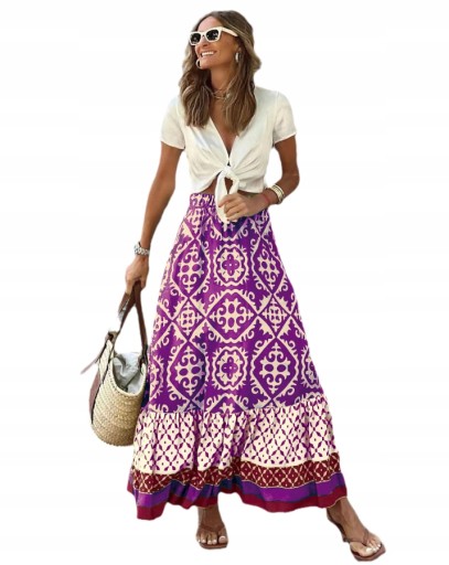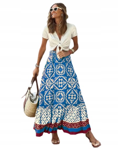 ZWIEWNA DŁUGA SPÓDNICA MAXI DO KOSTEK BOHO DAMSKA Wzór dominujący bez wzoru