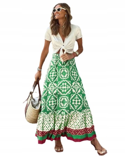 ZWIEWNA DŁUGA SPÓDNICA MAXI DO KOSTEK BOHO DAMSKA Cechy dodatkowe print (nadruk) z wysokim stanem