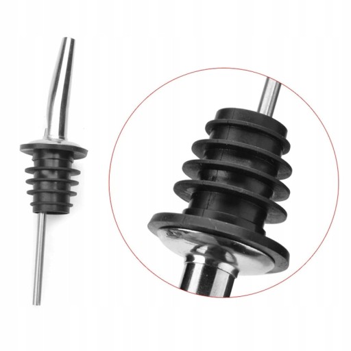 Nalewak wyposażony jest w gumowy czarny korek, który zapewnia szczelność i łatwość aplikacji w szyjce butelki.