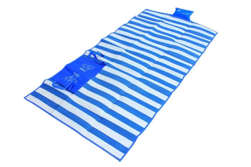 Wodoodporna mata plażowa z dodatkową, dmuchaną poduszką. Doskonale nadaje się do rozłożenia jej na plażowym piasku lub na pikniku w trawie. Bardzo łatwa do złożenia i rozłożenia, niezwykle trwała - świetnie zastępuje tradycyjny koc. Komfort użytkowania poprawia wbudowana poduszka. Jest bardzo lekka, a po złożeniu można ją zapiąć na pasek, co znacznie ułatwia jej przenoszenie. Wykonana z trwałego materiału, łatwego do utrzymania w czystości.
