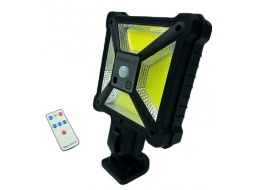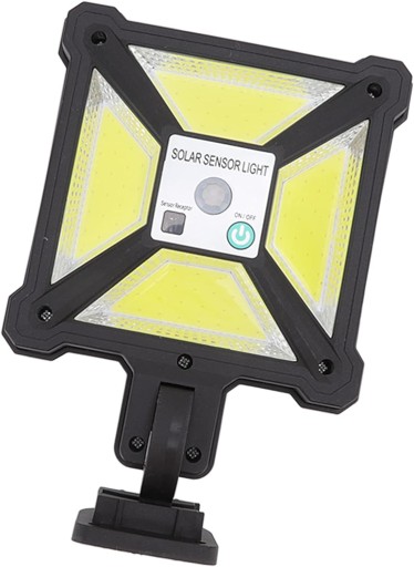 - Mocna lampa LED COB z panelem solarnym. Wbudowany w lampę akumulator ładuje się dzięki w/w zintegrowanemu panelowi słonecznemu.
