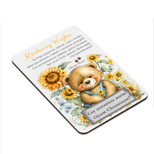 ✔️ Efekt zdrapki dodaje element niespodzianki - prośba o bycie Chrzestnym staje się niezapomnianym doświadczeniem.