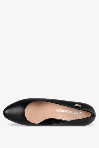 Czarne czółenka damskie marki Sergio Leone model PB130-CA zostały wykonane z wysokogatunkowej skóry ekologicznej co gwarantuje doskonałą jakość, wygodę i dopasowanie do stopy. Szukasz czarnych czółenek o niepowtarzalnym stylu i wyjątkowym komforcie? Oto coś specjalnego dla Ciebie! Buty te zachwycają wyglądem, ale także zapewniają niezrównany komfort noszenia przez cały dzień. Zostały one zaprojektowane z myślą o kobietach, które cenią sobie zarówno styl, jak i funkcjonalność. Ich ozdobny obcas w formie słupka dodaje pewności siebie i podkreśla kobiecą sylwetkę, jednocześnie zapewniając stabilność i wygodę podczas chodzenia. Zaokrąglony czubek nadaje niezwykłej finezji i klasy, co sprawia, że doskonale pasują zarówno do eleganckich, jak i bardziej casualowych stylizacji. Skórzana wkładka gwarantuje odpowiednie wsparcie dla stóp i zapewnia komfort nawet podczas długiego noszenia. Wsuwane obuwie ułatwia zakładanie i zdejmowanie, co jest niezwykle praktyczne w codziennym użytkowaniu. Na cholewce umieszczony został subtelny, metalowy znaczek z logo firmy, świadczący o wysokiej jakości oraz ekskluzywnym charakterze tego produktu. Jeśli szukasz czółenek, które połączą w sobie nie tylko styl i elegancję, ale także wygodę i funkcjonalność, to nasz model jest idealnym wyborem dla Ciebie. Sklep Casu proponuje wiele fasonów czółenek w przykuwających wzrok kolorach.