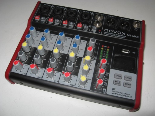Novox M6 MK II – analogowy mikser z procesorem efektów, 4 przedwzmacniaczami mikrofonowymi, możliwością nagrywania na pamięć USB, łącznością Bluetooth oraz odtwarzaczem mp3.