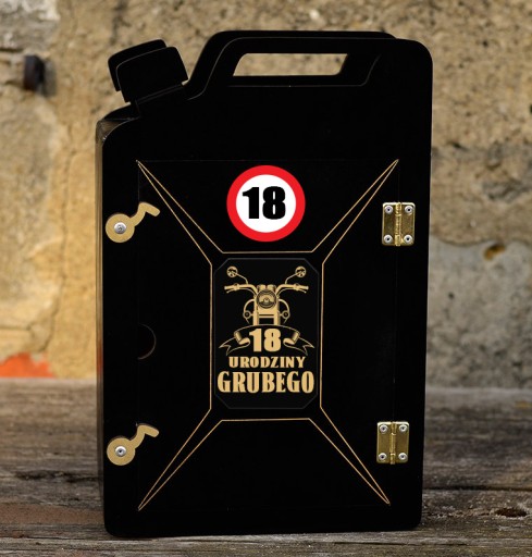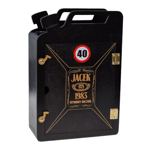 Wykonany z wysokiej jakości drewna kanister w formie barku doskonale sprawdzi się jako prezent dla męża, chłopaka, taty, dziadka czy brata. Przyciąga on uwagę swoim oryginalnym wyglądem oraz funkcjonalnością. Do środka można włożyć np. butelkę ulubionego alkoholu oraz 2 szklanki lub puszki.