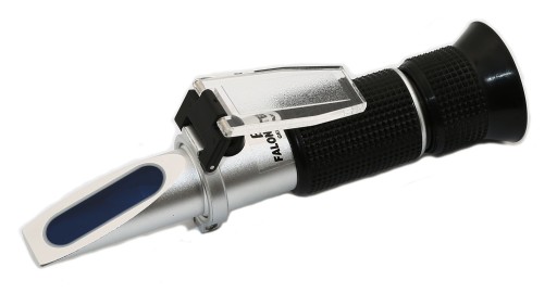 4️⃣ Skieruj refraktometr do światła i przez wizjer odczytaj wartość ze skali na granicy białego i niebieskiego obszaru.