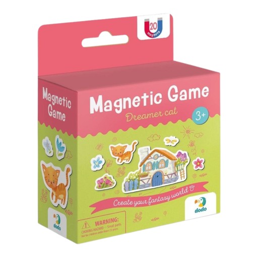Gra magnetyczna "Kotek Marzyciel" to pełna uroku podróż po magicznym świecie kotka, w którym marzenia nabierają kształtu. W zestawie znajduje się 20 uroczych magnesów, z których każdy przynosi ze sobą odrobinę marzeń i uśmiechu. Motywy magnesów to nie tylko kotek marzyciel, ale także motylki, kwiatuszki oraz uroczy domek.