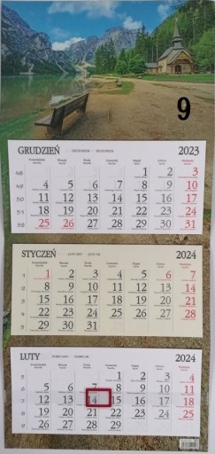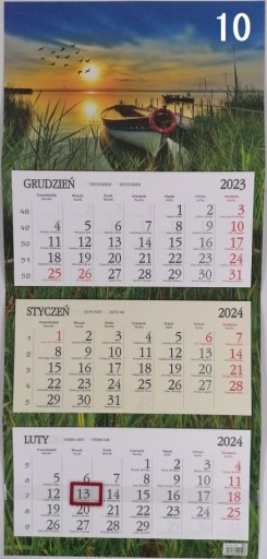 Kalendarz 2024 trójdzielny z płaską główką MIX